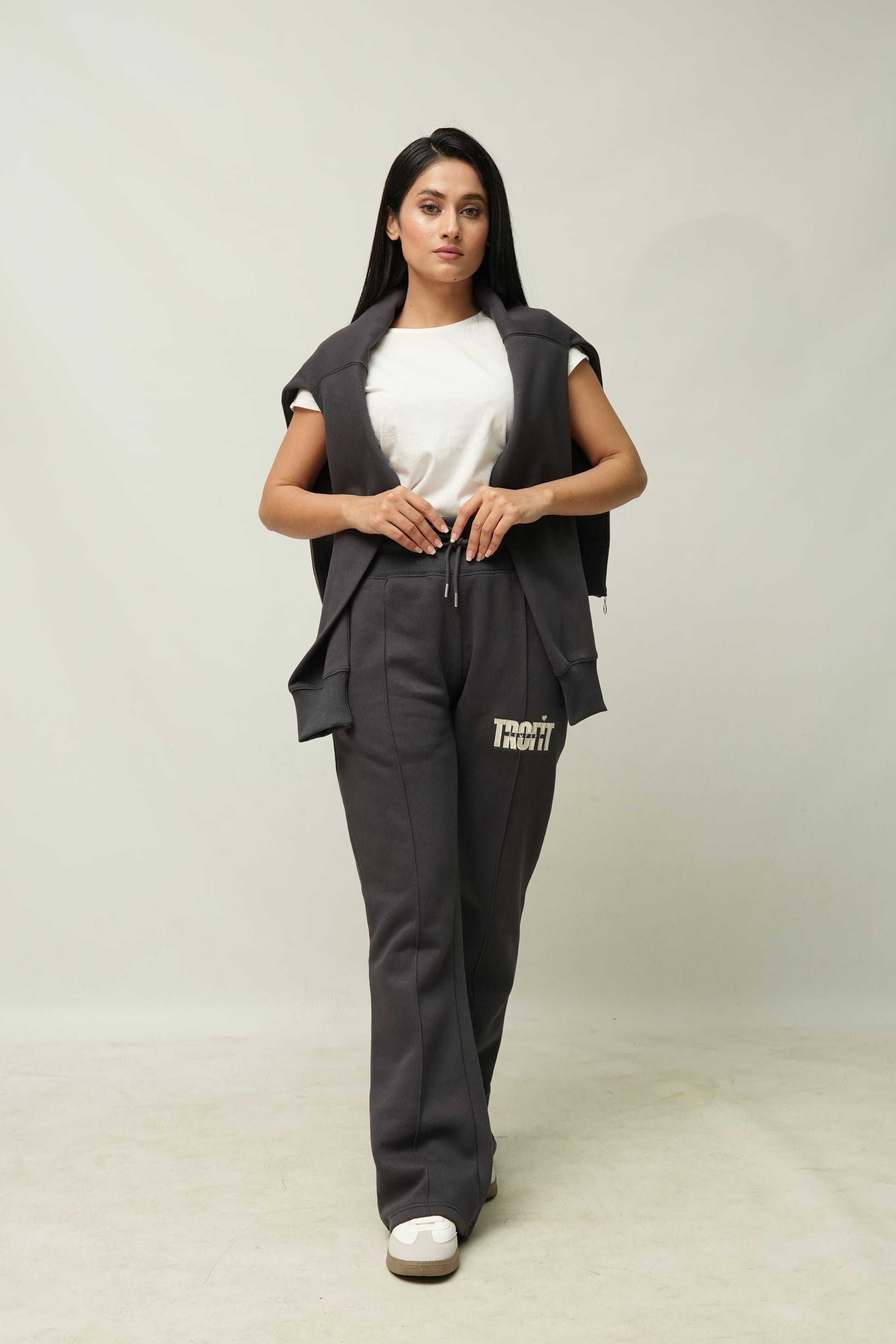 Diseñado para un ajuste relajado y discreto , nuestro conjunto deportivo presenta una sudadera ligeramente oversize y pantalones acampanados para una silueta favorecedora. Consulta las medidas a continuación para encontrar tu talla perfecta: